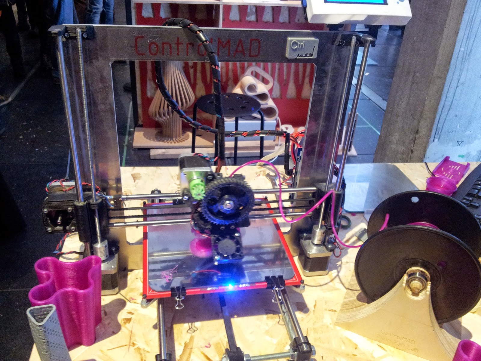 Estudiantes y Profesores del ámbito del diseño, la arquitectura e interiorismo, que aquello era una máquina que ejecutaba un prototipo en 3D. Resultó un recipiente para lápices muy original.